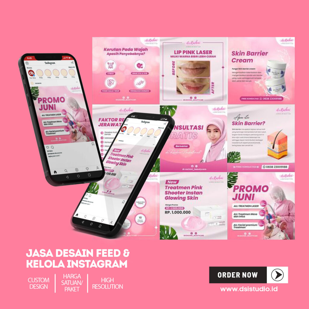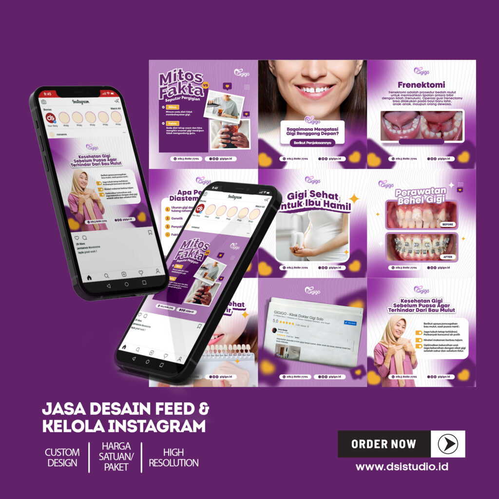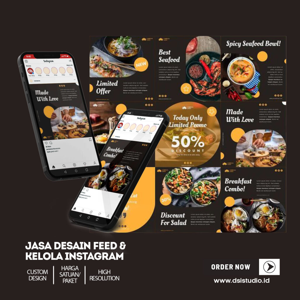 Konten desain grafis disini meliputi desain feed yang akan di post di akun sosial media.