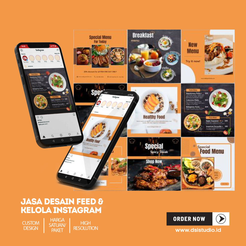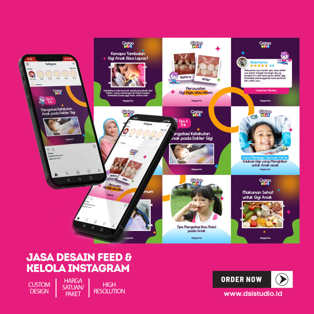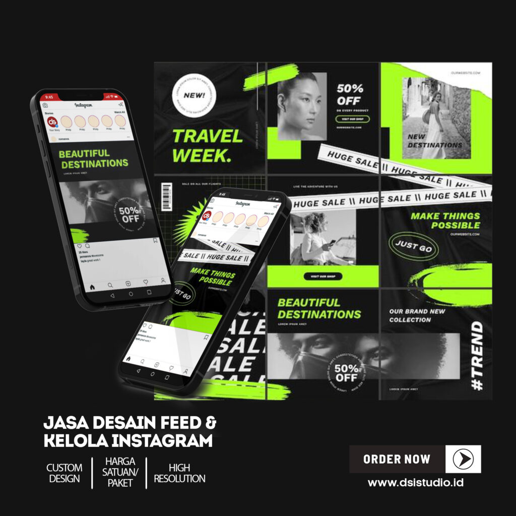 Konten desain grafis disini meliputi desain feed yang akan di post di akun sosial media.